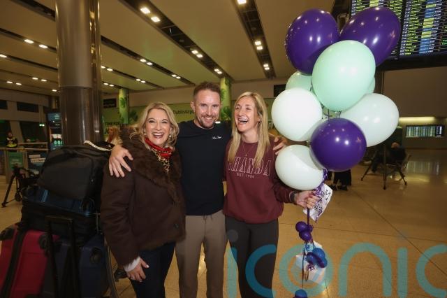 Dympna Mackin, from Mayobridge, Co Down, who had been in Dubai with her husband to celebrate her 40th birthday, walked through arrivals to hugs from family waiting to see her.